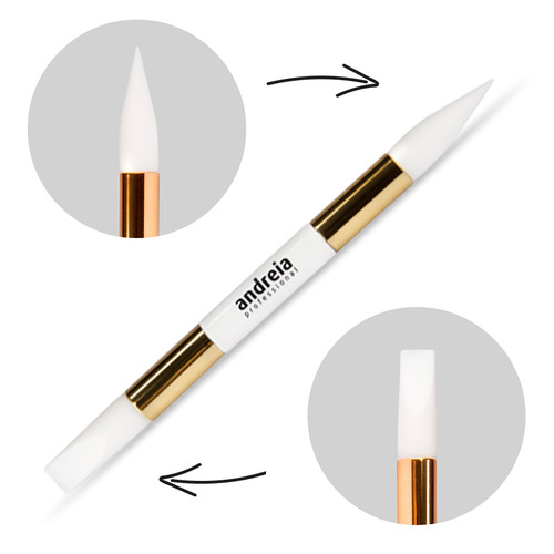 Pincel Duplo em silicone, com superfície de toque suave, ideal para trabalhos pormenorizados em verniz, verniz gel, gel, acrílico e produtos de nail art.
