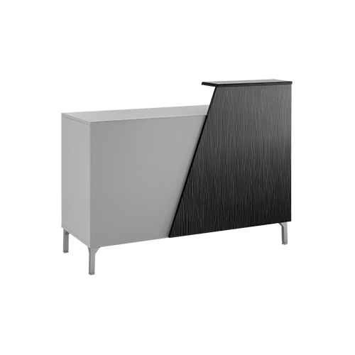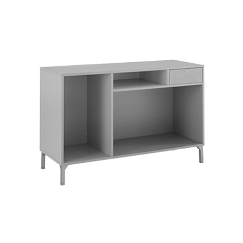 Balcão AGV Belinda com estrutura em cinza e cor customizável na moldura frontal.