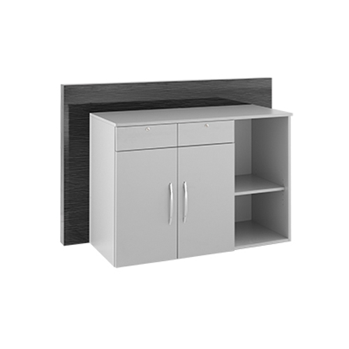 Balcão AGV Allure com estrutura em cinza e cor customizável na moldura frontal.