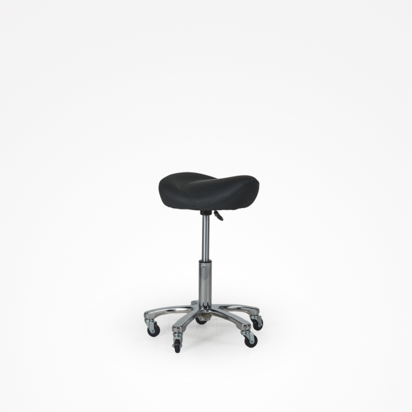 Banco ajustável em altura com bomba de gás de grande extensão. Base em forma de estrela e assento ergonômico.