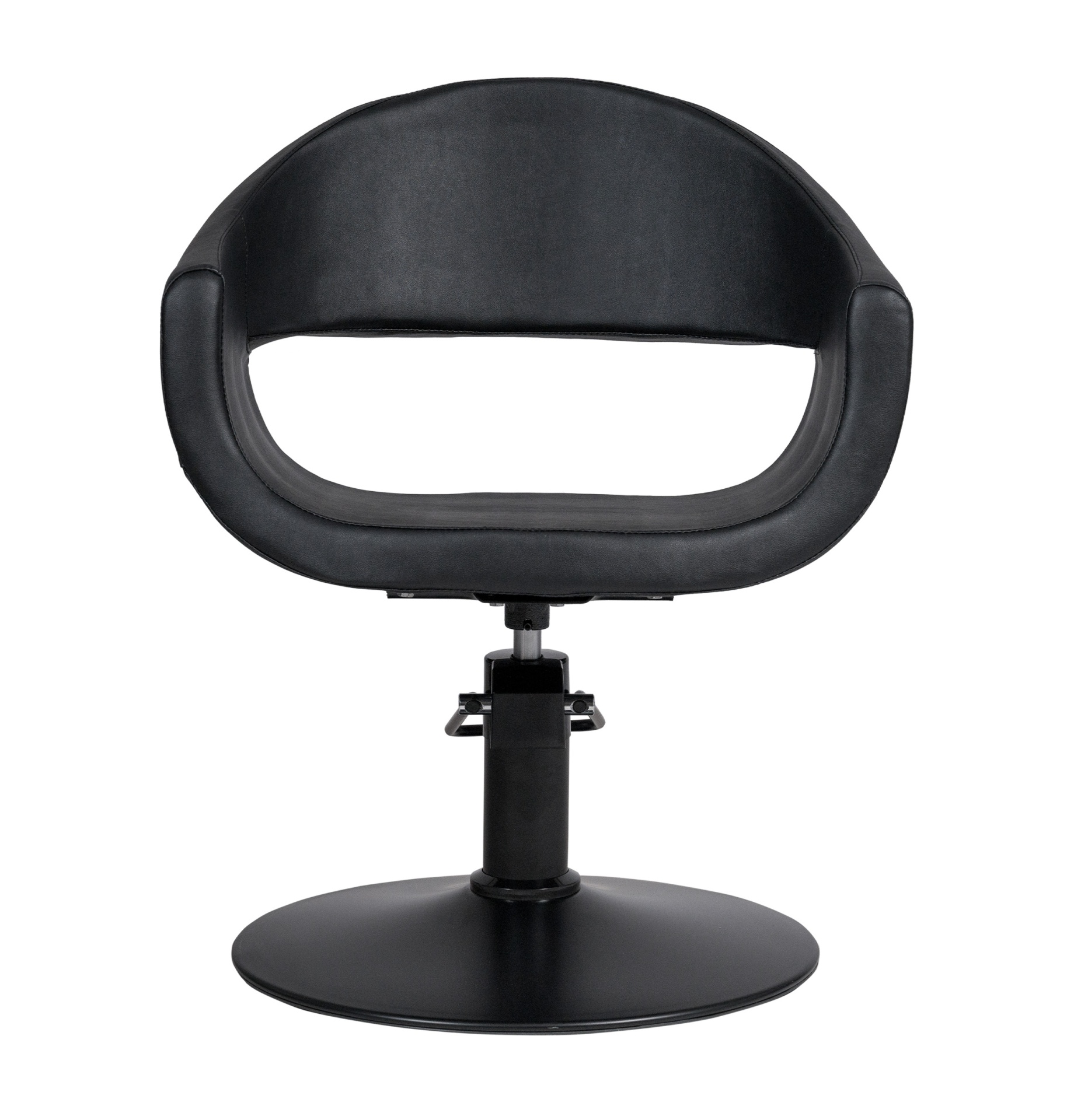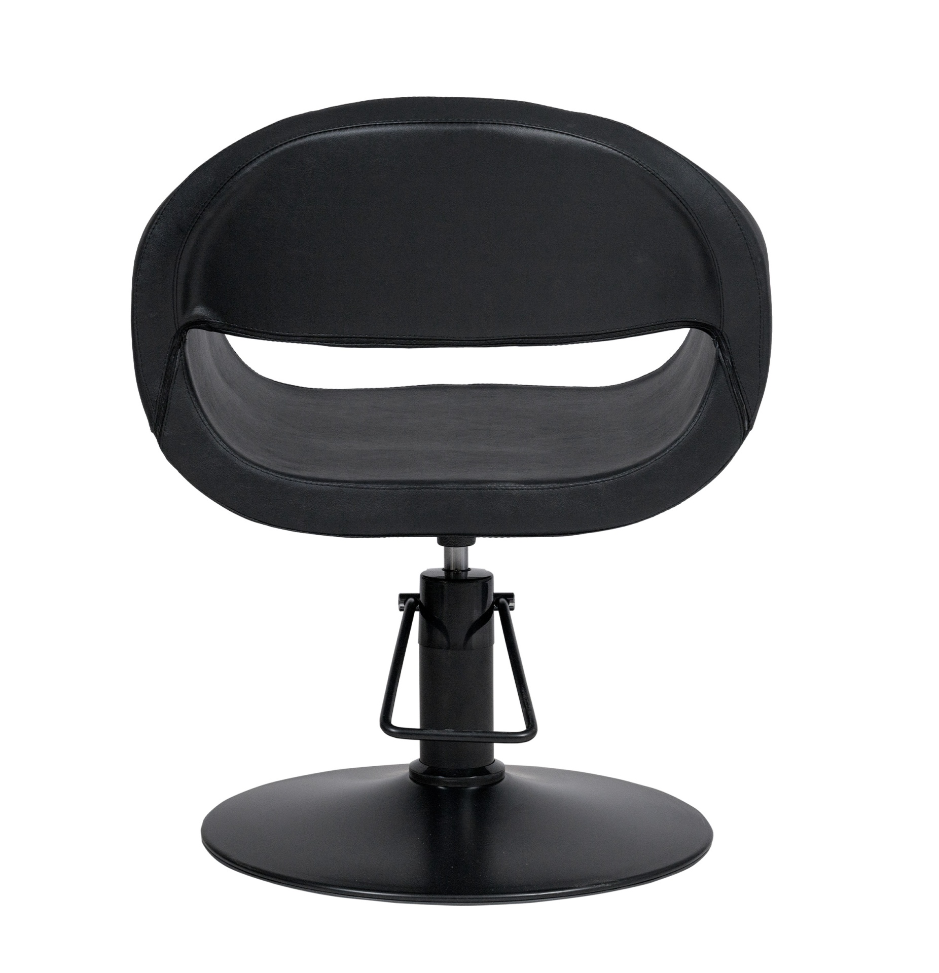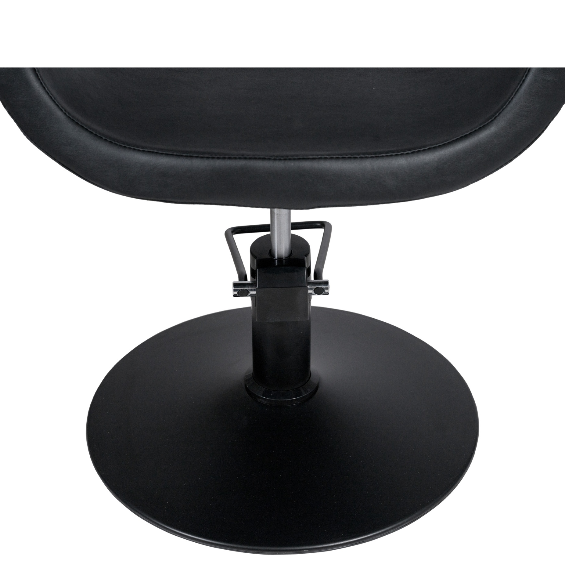 O assento monobloco possui estrutura interna em metal e espuma de poliuretano injetada de alta densidade, garantindo durabilidade, conforto prolongado e resistência à deformação ao longo do tempo. A base circular extraplana com acabamento preto fosco assegura excelente estabilidade e maior liberdade de movimentos para o profissional, mesmo em espaços confinados.