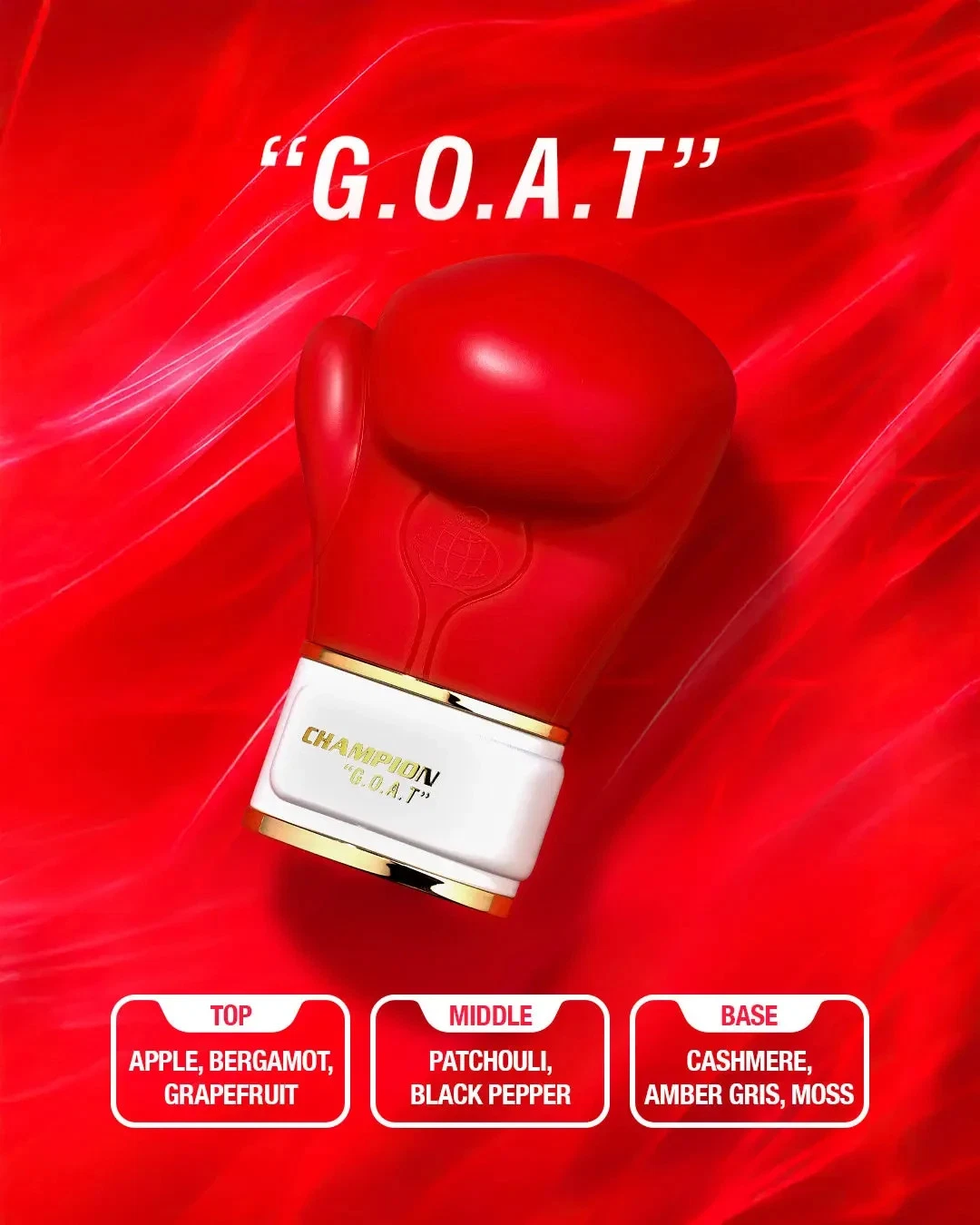 O resultado é um perfume intenso, sedutor e de presença, ideal para quem quer transmitir confiança máxima — o verdadeiro espírito de um G.O.A.T (Greatest Of All Time).