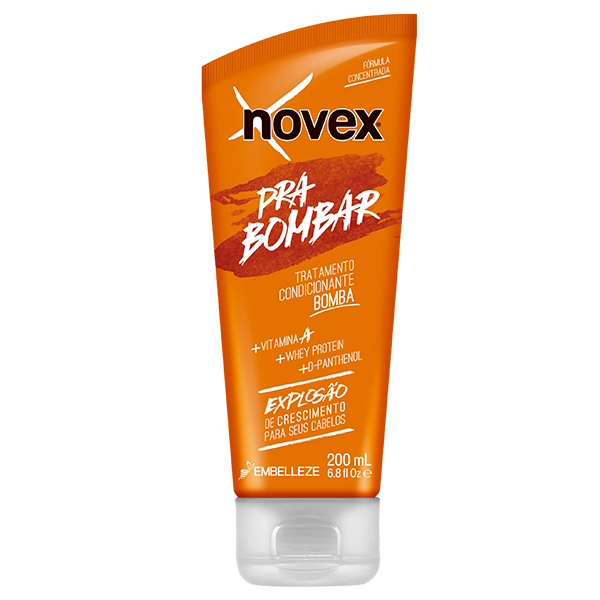 Parceiro perfeito do Champô Novex Pra Bombar, o Condicionador Novex Pra Bombar oferece Vitamina A para os cabelos crescerem mais rápido; Whey Protein para aumentar a força do fio; e ainda D-Pantenol, que oferece uma explosão de brilho, suavidade e protege das pontas espigadas.