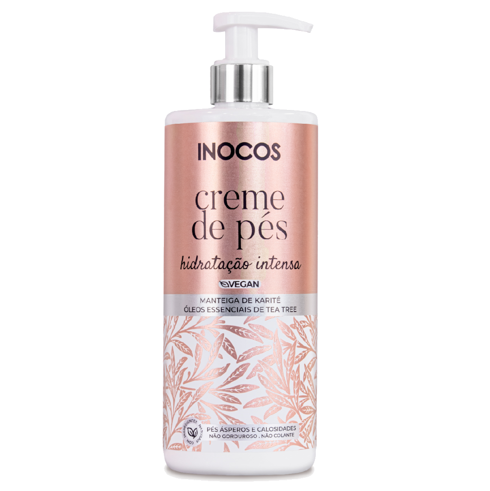 O Creme de pés é enriquecido com manteiga de karité e óleos essenciais de tea tree. Este creme INOCOS é ideal para pés ásperos e com calosidades.