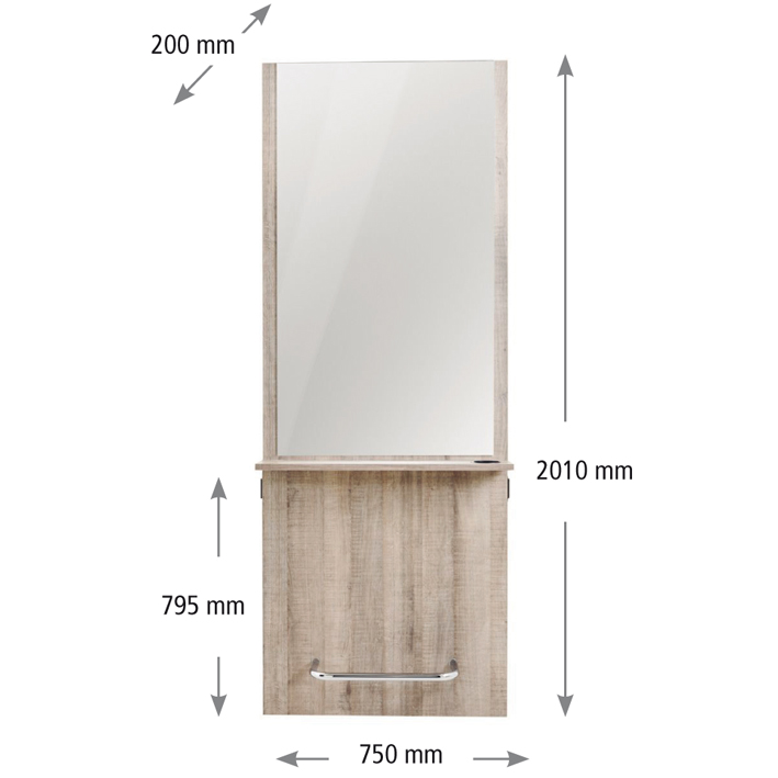Laminado em grafite. Com prateleira com suporte para secador de cabelo e apoio cromado embutido. 201 x 20 x 75cm. Carvalho.