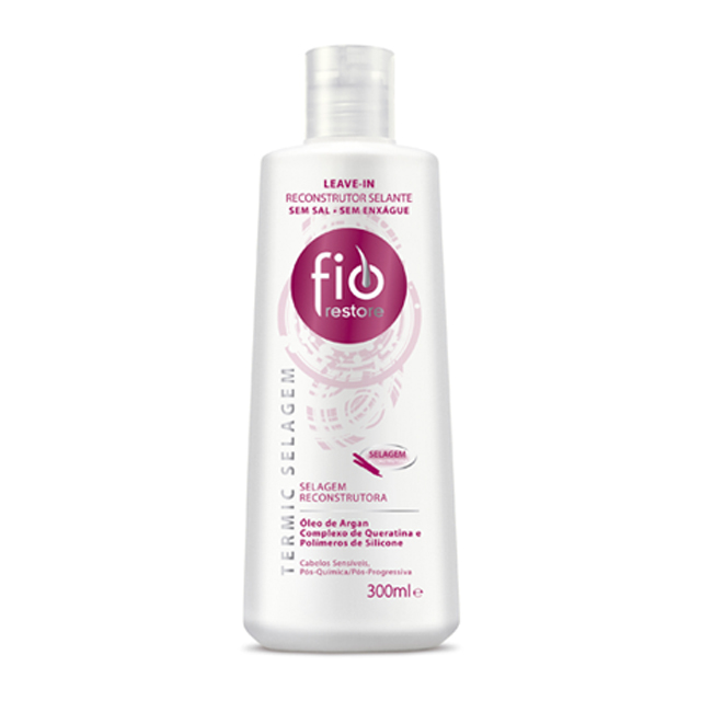 A Linha Fio Restore termic selagem foi desenvolvida especialmente para os cabelos sensibilizados por agressões externas, processos de alisamento químico ou escova progressiva. Enriquecido com óleo de argan, com propriedades para nutrir, amaciar, combater o frizz, restaurar a elasticidade dos fios e proporcionar especial brilho aos cabelos, o champo termic selagem, traz ainda em sua composição um complexo de queratina e polímeros de silicone. Quando aplicado nos cabelos e ativado pelo calor do secador e prancha, forma um filme que adere à superfície dos fios., restaurando intensamente as partes danificadas, selando por completo as cutículas e proporcionando um resultado perfeito de reconstrução capilar.