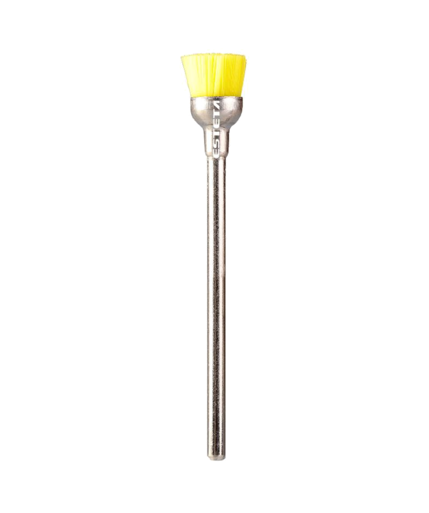 Fresa Escova circular de Nylon Amarelo ESTETA, filamentos Duros, imprescindível para a limpeza, o polimento e a remoção de pó das unhas.