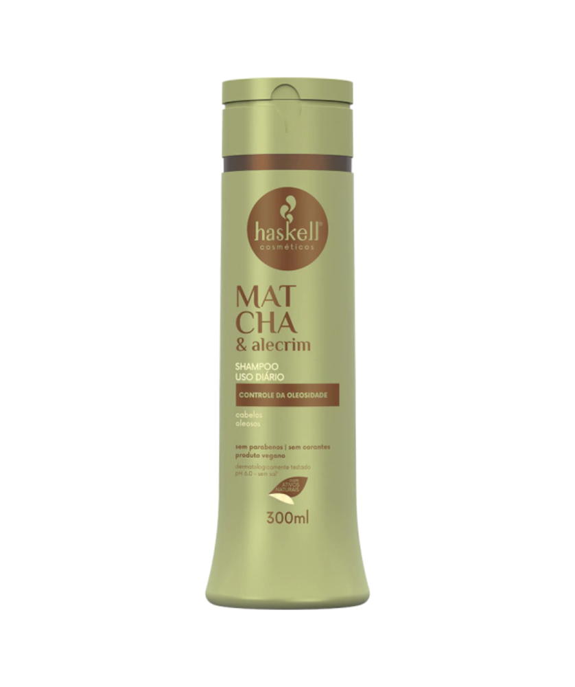 Sua fórmula conta com extrato de matcha e extrato de alecrim, que renovam e purificam os fios.