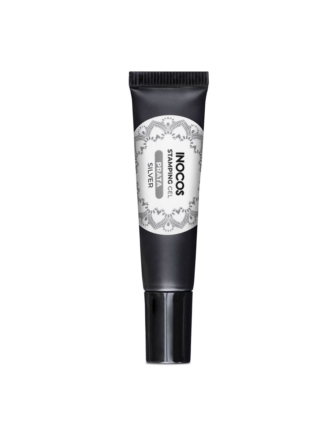 Gel de estampagem em Prata INOCOS de 8ml, de elevada pigmentação para a técnica de Nail Art Stamping.