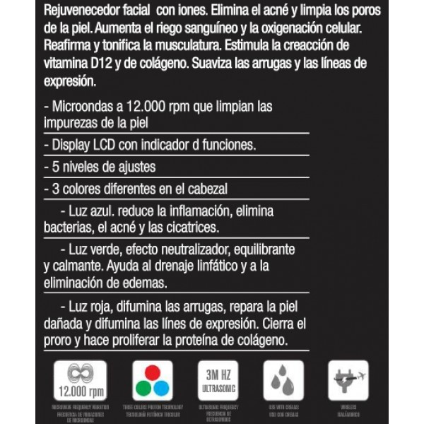 Indicada para tratamentos para eliminar acne e limpeza de poros, tratamentos refirmantes e tonificantes muscular e suavizar rugas e linhas de expressão.