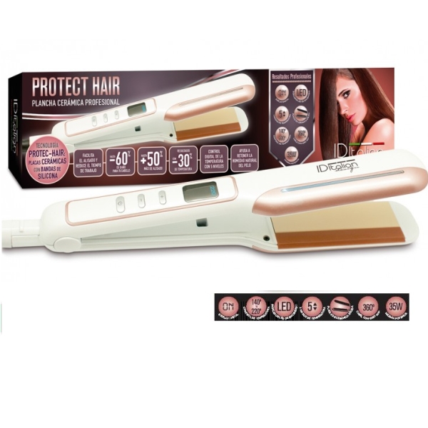 Prancha de alisamento com display digital, 5 modos de temperatura entre140º a 220ºC e placas de cerâmica sólidas.