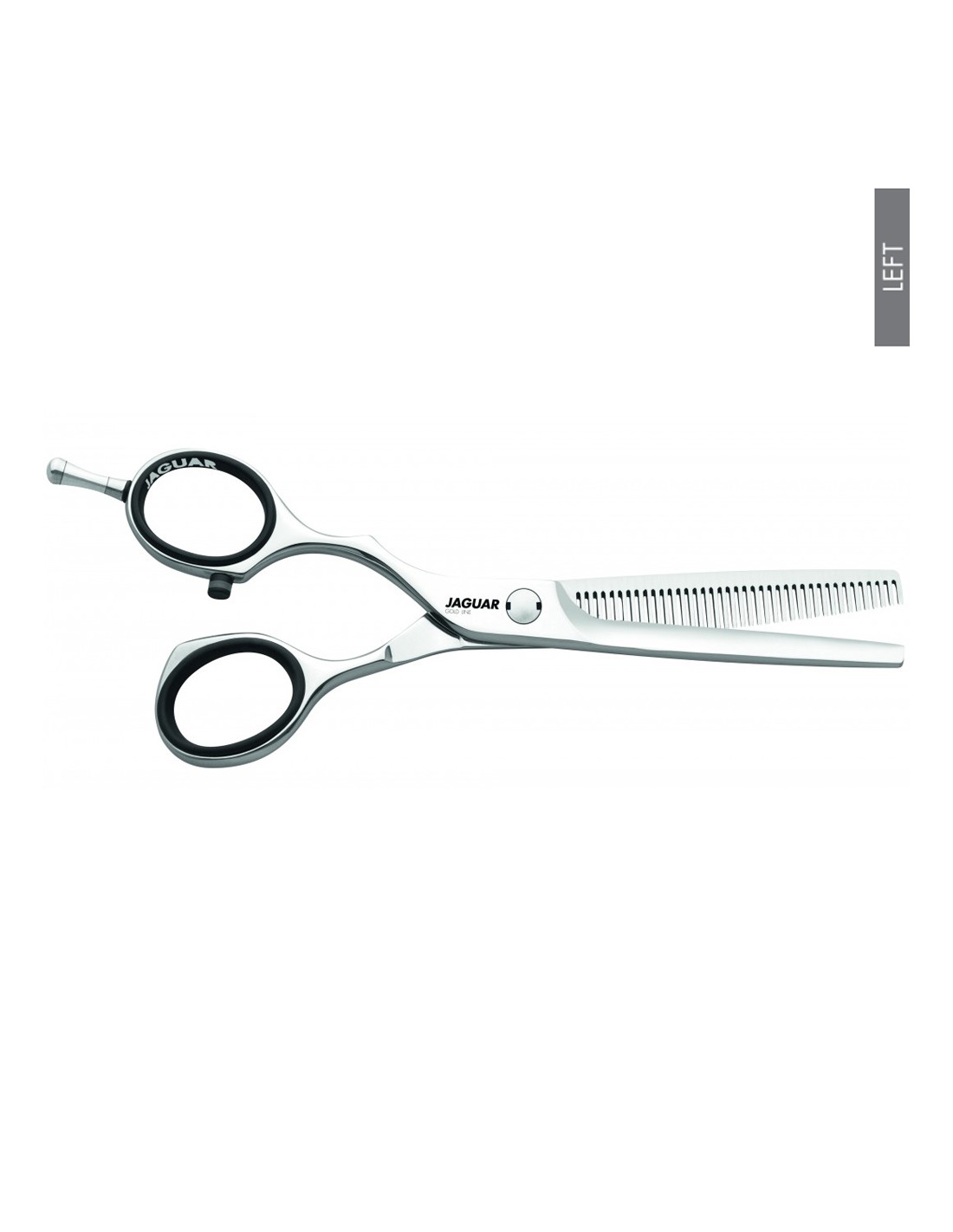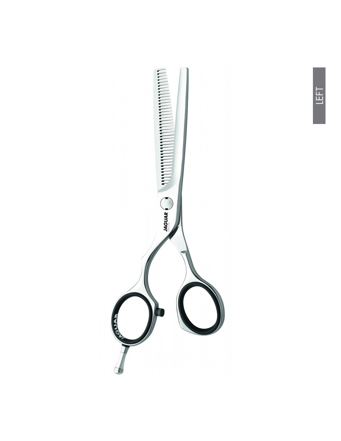 Tesoura para canhotos com 39 dentes de desbaste. O seu dentado é em forma de ''V'' para uma sensação suave e um corte preciso.