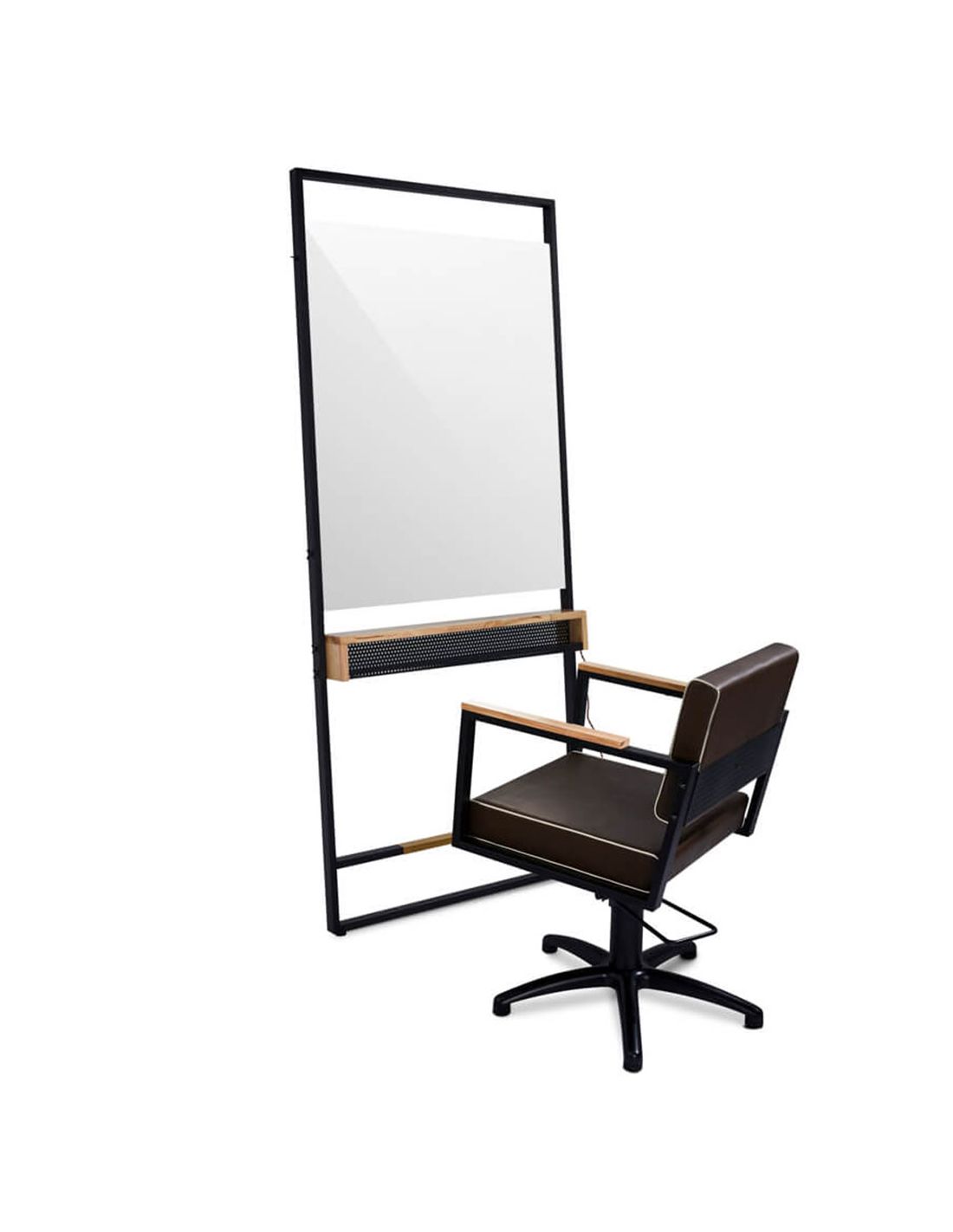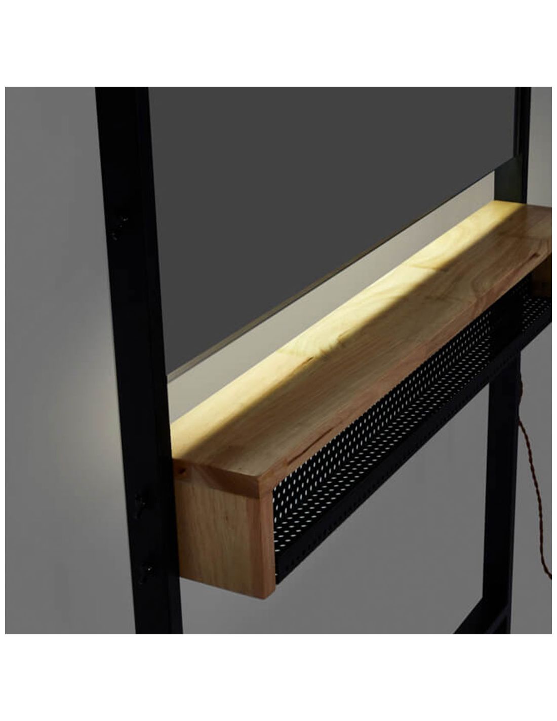 Fabricado em madeira envernizada, com prateleira de carvalho maciço e com luz LED incorporada.