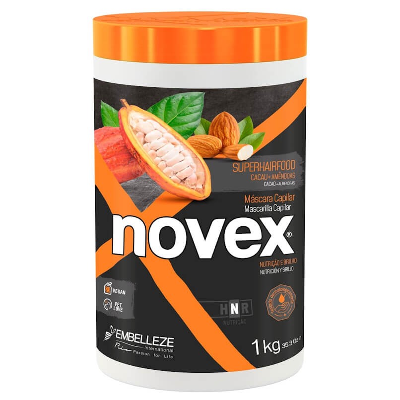 Máscara Novex SuperHairFood Cacau e Amêndoas limpa e perfuma os cabelos. Nutre e hidrata os fios, deixando os cabelos brilhantes e suaves. Indicado para todos os tipos de cabelo.