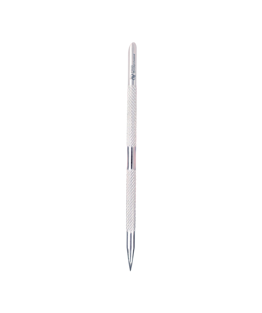 Lado arredondado, que se adapta à forma da unha permitindo elevar e empurrar a cutícula para sua posterior remoção. O lado pontiagudo permite remover produto em excesso da unha. Adequado para manicure russa e combinada com um design funcional, preciso e robusto. O palito é destinado ao uso profissional. Pode ser submetido a todos os tipos de desinfeção. Produção: Vietnam | Afiação manual.