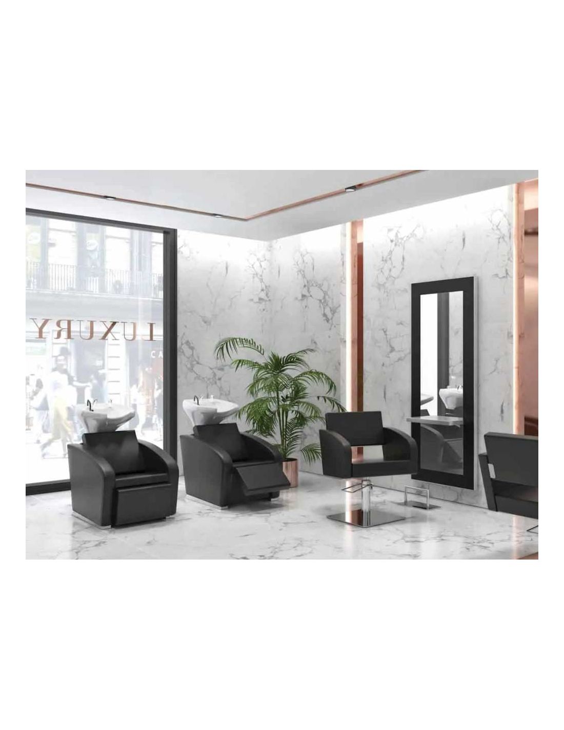 Rampa de Lavagem com em estofo trabalhado em poli-pele e espuma de alta densidade de recuperação rápida.