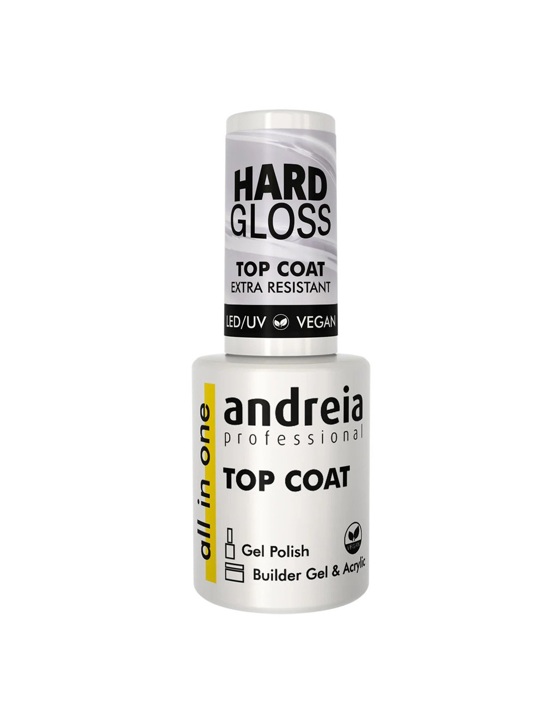 Top Coat All in One Andreia Profissional Hard Gloss Extra Resistant 10.5ml Ideal para utilização com Verniz Gel, Gel de Construção e Acrílico