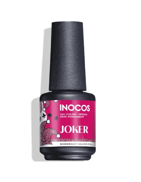 Verniz Gel Inocos Joker na cor Bordeaux Foil Prata alia beleza e durabilidade!