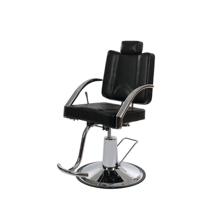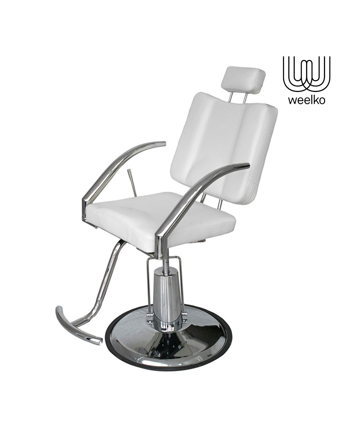 Cadeira de maquilhagem giratória com moldura cromada, com altura regulável por uma bomba hidráulica. A inclinação do encosto é ajustável até 40º por elevação a gás dupla com uma alavanca lateral.