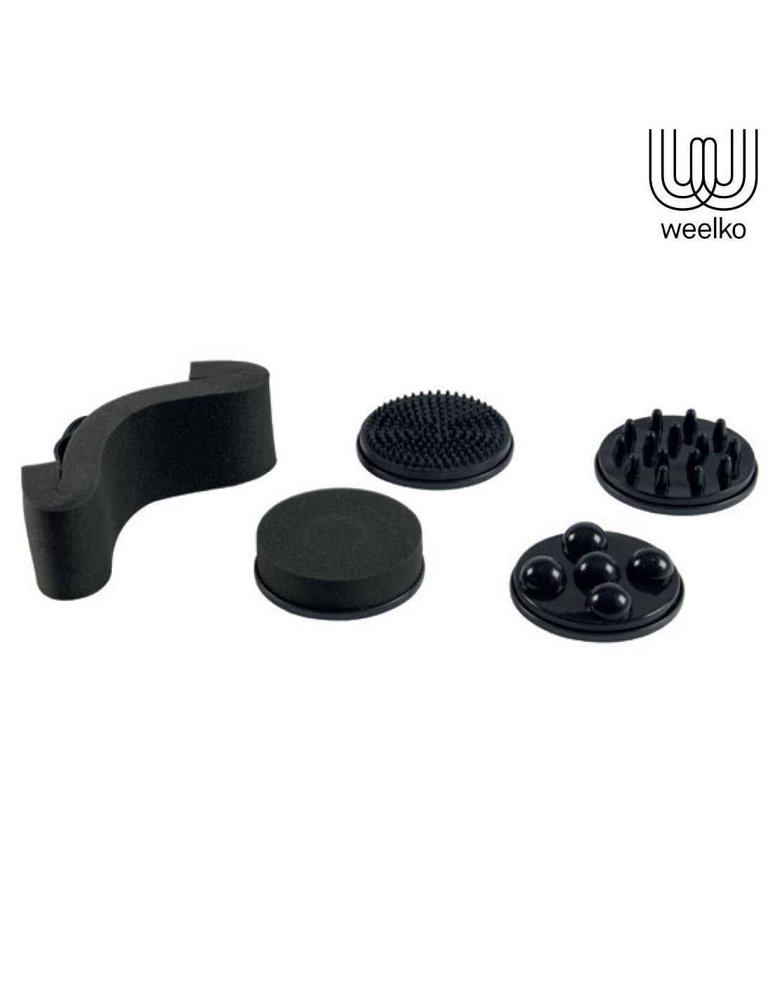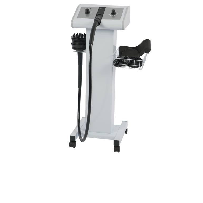 Equipamento de massagem corporal vibratório equipado com 5 cabeças para diferentes tratamentos. Tempo e intensidade ajustáveis.